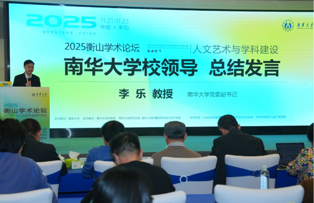 2025年11月21至23日,“衡山论坛学术大会”在南华大学顺利举办。此次论坛以“人文艺术与学科建设”为主题,汇聚了来自中央美术学院、清华大学、江南大学等多所高校、科研院所的300多位专家学者及师生代表。旨在凝聚学界、业界共识,聚焦人文艺术领域学术研究的范式创新与学科体系的系统性重构,为构建中国式现代化的学科发展新格局和社会主义现代化强国贡献人文艺术领域的智慧与力量。