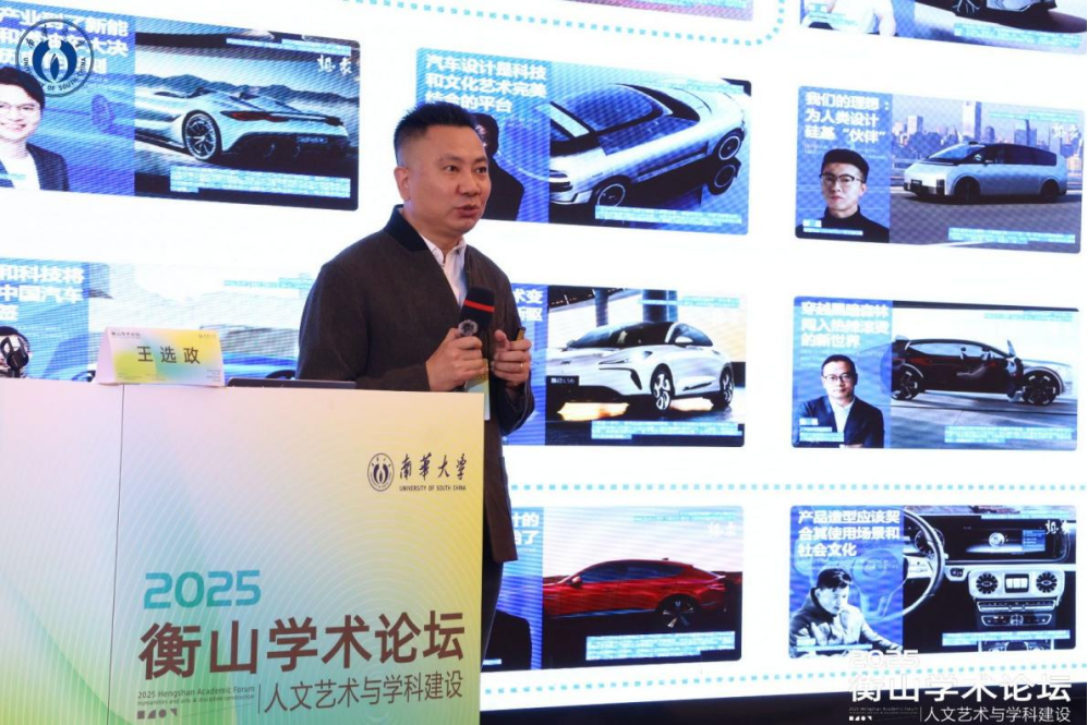 2025年11月22日,中央美术学院设计学院王选政教授应邀出席2025衡山学术论坛暨人文艺术与学科建设大会,作《趋势方位与科技美学:中央美术学院设计学院教学实践》专题讲座。本次论坛由南华大学主办,科研部、研究生院与松霖建筑与设计艺术学院共同承办。