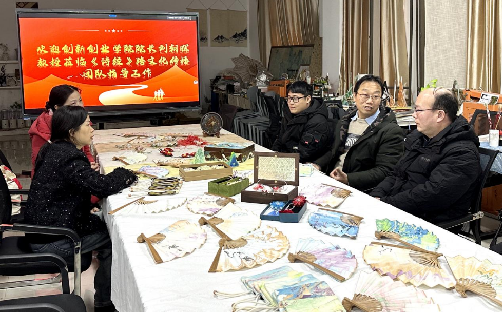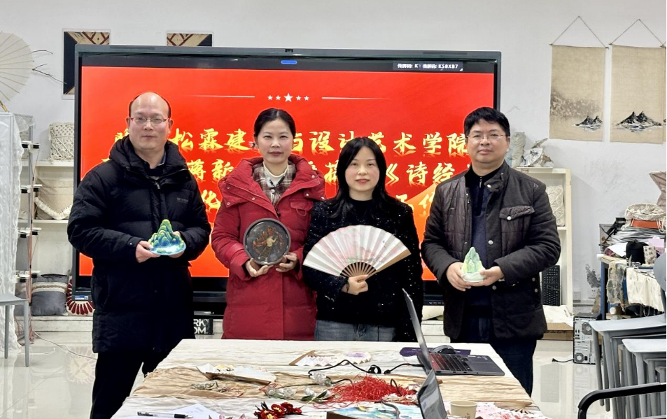 2026年1月5日,南华大学创新创业学院副院长刘朝晖、语言文学学院副院长李广伟、松霖建筑与设计艺术学院副院长蒋新波一行,赴松霖建筑与设计艺术学院陈设设计实验室,就《诗经》主题跨学科融合文化传播项目开展专题调研与指导,并对前期展演成果进行总结交流。此次研讨立足深化学科交叉融合,聚焦中华优秀传统文化的当代表达与国际传播,探索创新创业教育与文化实践协同发展的有效路径。